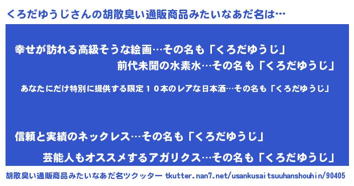 | 意味不明あだ名 | 『住所不定無職くろだゆうじ(59歳)』 |