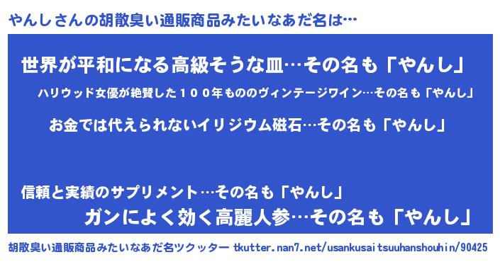 | 意味不明あだ名 | 『眠気覚ましガムやんし味』『自称やんし』 |