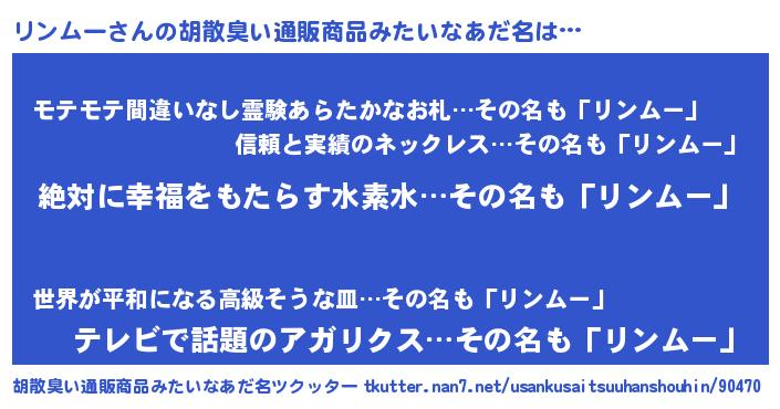 | ヘコむあだ名 | 『リンムー(遠い目)』『リンにゅー』 |