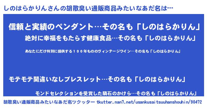 | ヘコむあだ名 | 『しのを』『しのはらかりん(笑)』 |