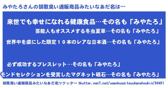 | ヘコむあだ名 | 『みやたろ(爆)』『みやもー』『牛乳』 |