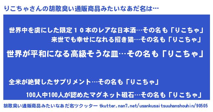 | 意味不明あだ名 | 『りこちゃフォーエバー』 |
