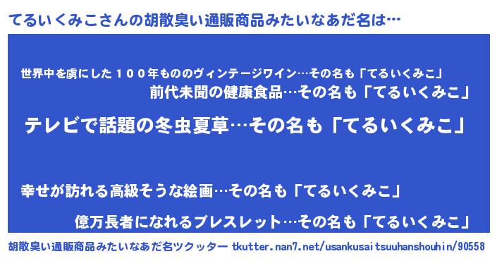| ヘコむあだ名 | 『てるもー』『てるいくみこ(爆)』 |