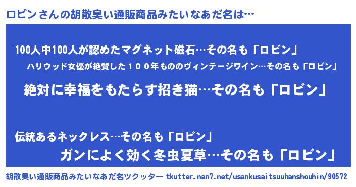 | ヘコむあだ名 | 『ロビン(小並感)』『ロビお』 |