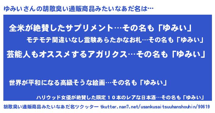| 意味不明あだ名 | 『自称ゆみい』『めかぶ科ゆみい属』 |