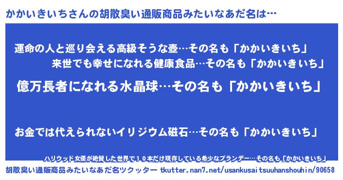| ヒーロー風カッコイイあだ名 | 『スーパーカカイキイチ』『仮面カカダー』 |