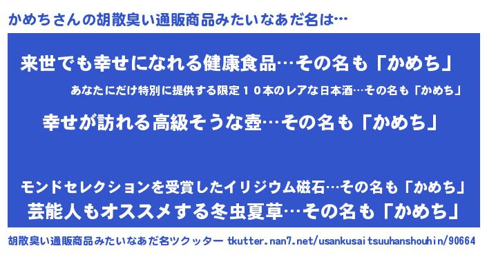 | 意味不明あだ名 | 『かめちフォーエバー』『永久保存かめち』 |