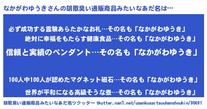 | 女子向けラノベタイトル風あだ名 | 『なかがわゆうきは平凡を望む』 |