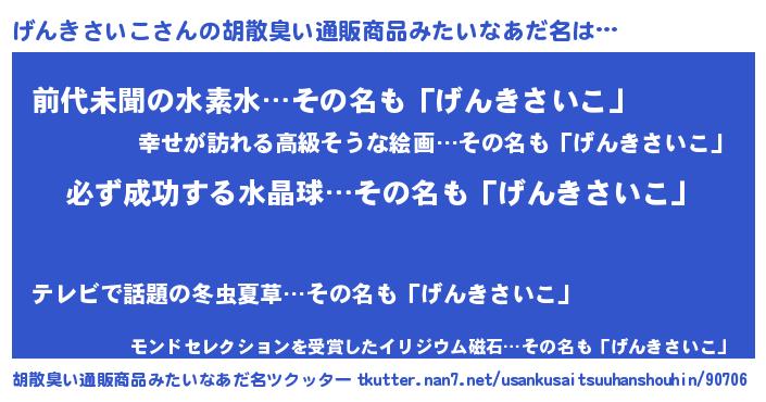 | ヘコむあだ名 | 『げんにゅー』『げんきさいこ(震え声)』 |