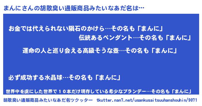 | ヒーロー風カッコイイあだ名 | 『ウルトラまんにマン』『愛の使者まんに』 |