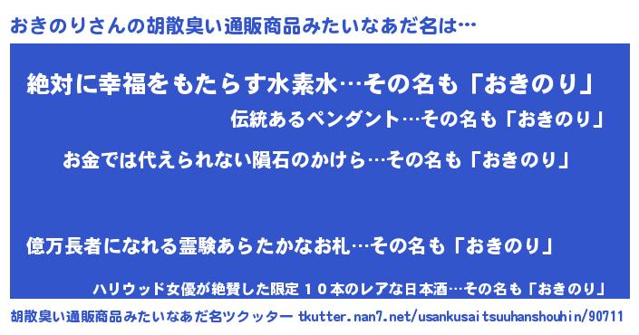 | ヘコむあだ名 | 『おきのり(遠い目)』『おきぷりん』 |