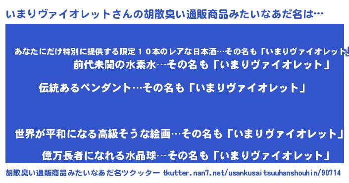 | 女子向けラノベタイトル風あだ名 | 『いまりヴァイオレットの卵を拾いまして』 |