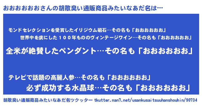 | 男性向けラノベタイトル風あだ名 | 『おおおおおおの嫁は女の子じゃないと思った?』 |