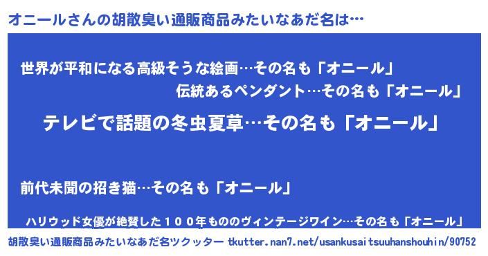 | 男性向けラノベタイトル風あだ名 | 『Re:オニールから始める異世界生活』 |