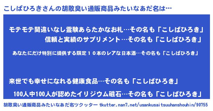 | 男性向けラノベタイトル風あだ名 | 『こしばひろき~年齢イコール彼女いない歴の魔法使い~』 |