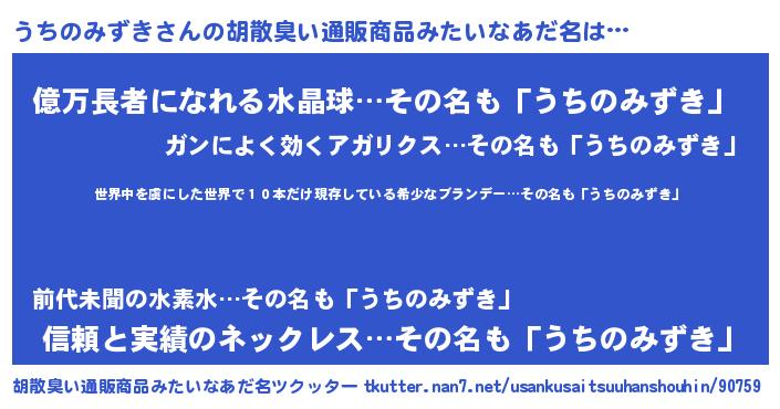 | 意味不明あだ名 | 『住所不定無職うちのみずき(84歳)』 |