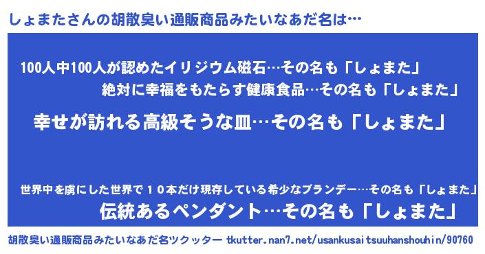 | 欧米人風あだ名 | 『しょまたクリステル』 |