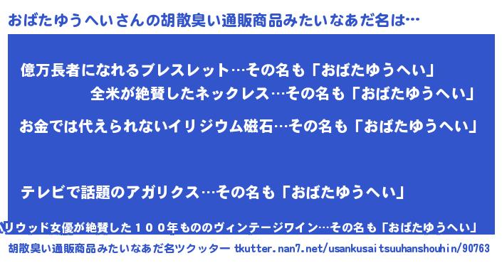 | 女子向けラノベタイトル風あだ名 | 『おばたゆうへい恋絵巻』 |