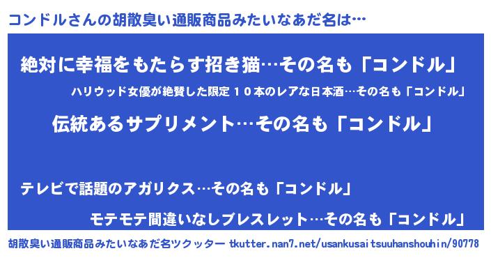 | ヘコむあだ名 | 『コンを』『コンドル(小並感)』 |