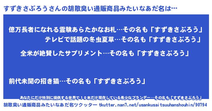 | 意味不明あだ名 | 『とにかく怪しいすずきさぶろう』 |