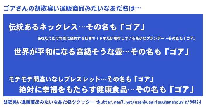 | ヘコむあだ名 | 『豆乳』『ゴアっ子』『ゴア(笑)』 |