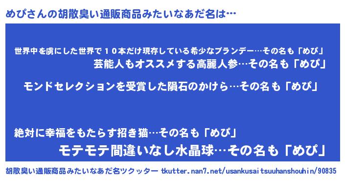 意味不明あだ名 | 『眠気覚ましガムめぴ味』『ペロリンめぴ』 |