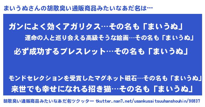 | ヘコむあだ名 | 『まいにー』『まいうぬ(笑)』『牛乳』 |