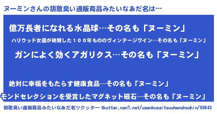 | ヘコむあだ名 | 『ヌーにゅー』『ヌーミン(笑)』 |