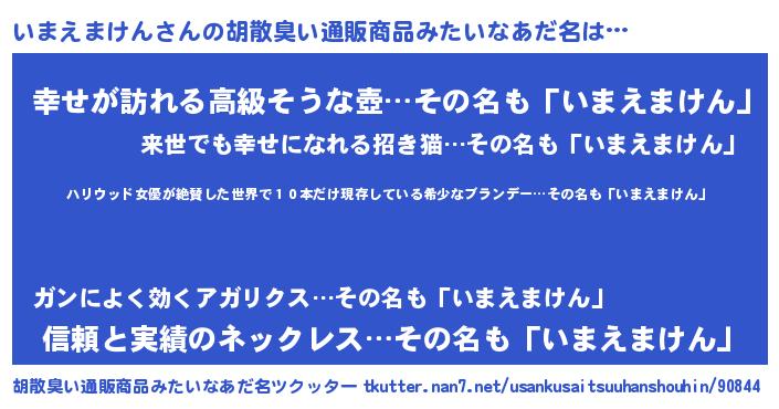 | 意味不明あだ名 | 『住所不定無職いまえまけん(93歳)』 |