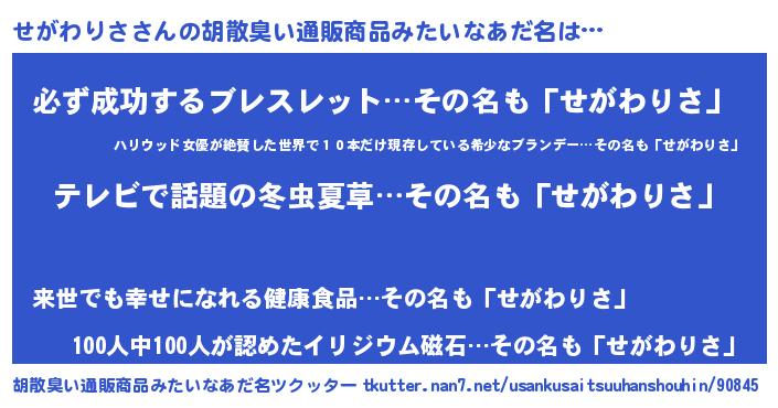 | ヘコむあだ名 | 『せがっふぃ~』『せがわりさ(笑)』 |