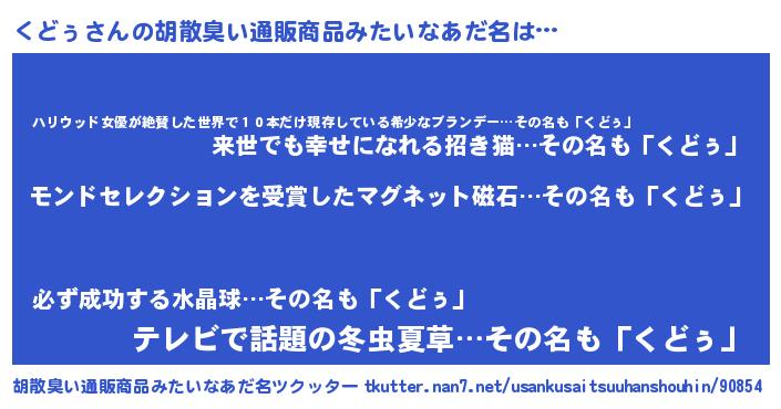 | ヘコむあだ名 | 『くどぅ(小並感)』『くどもー』 |