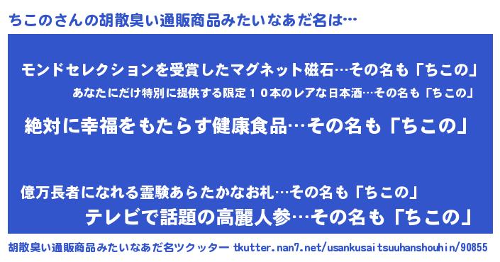 | ヘコむあだ名 | 『ちこの(笑)』『ちこにー』『ちこお』 |