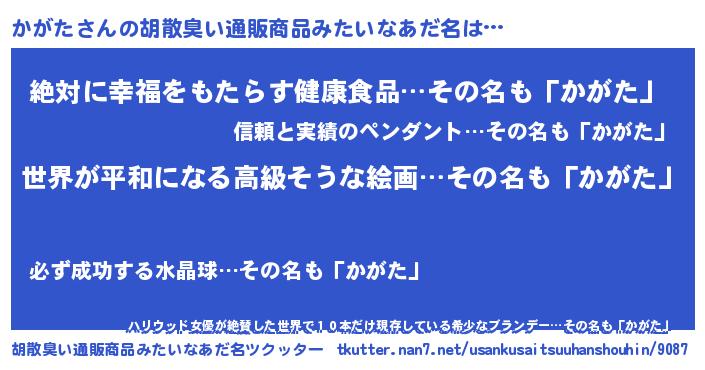 | ヘコむあだ名 | 『なまこ酢』『かがた(震え声)』 |