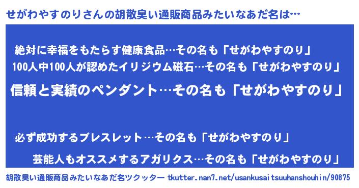 | 意味不明あだ名 | 『とにかく怪しいせがわやすのり』 |