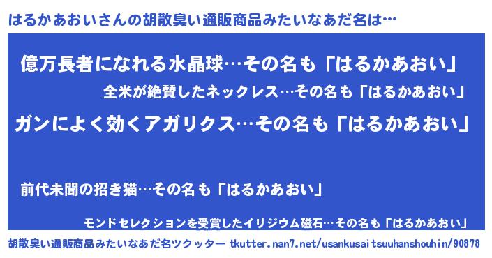 | 男性向けラノベタイトル風あだ名 | 『ハルカアオイスレイヤー』 |