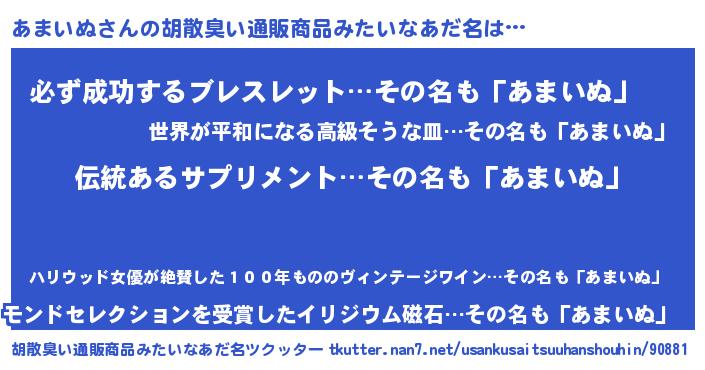 | 意味不明あだ名 | 『とにかく怪しいあまいぬ』 |
