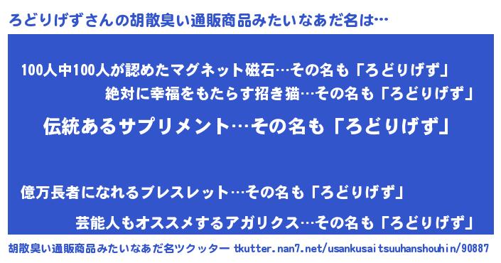 | ヘコむあだ名 | 『ろどを』『ろどりげず(小並感)』 |