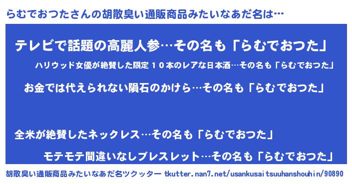 | 欧米人風あだ名 | 『ダニエルらむでおつた』 |