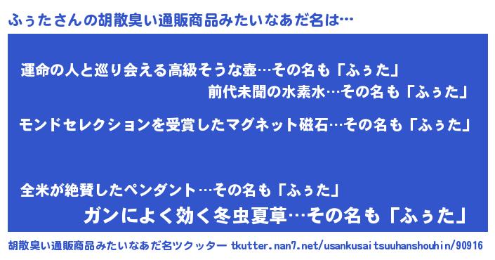 | ヒーロー風カッコイイあだ名 | 『天空の使者ふぅた』『ネオフゥタ』 |