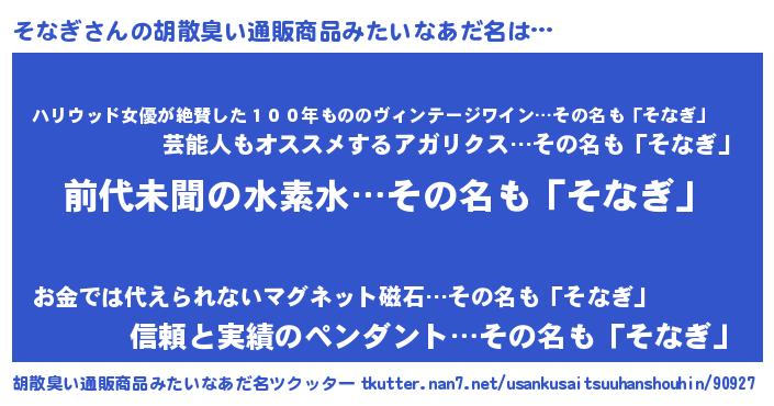 | 意味不明あだ名 | 『永久保存そなぎ』『自称そなぎ』 |