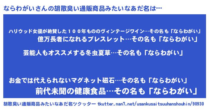 | 意味不明あだ名 | 『自称ならわがい』『永久保存ならわがい』 |