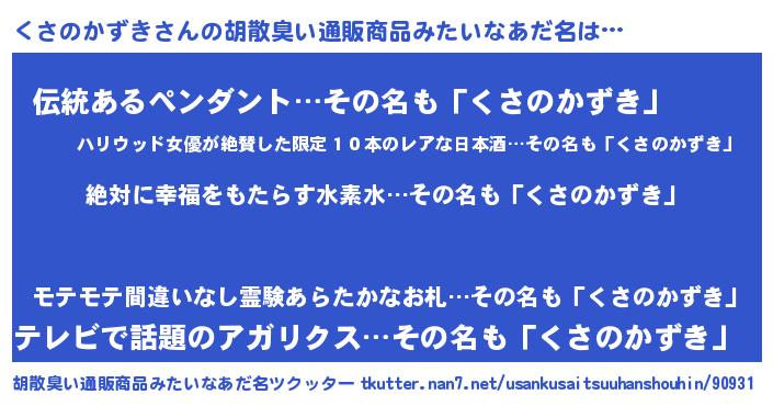 | ヘコむあだ名 | 『くさのかずき(震え声)』『くさっぺ』 |