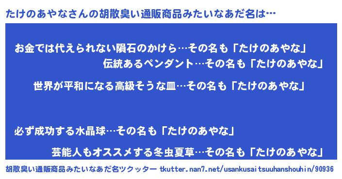 | ファンタジー風あだ名 | 『エターナルタケノアヤナー』 |