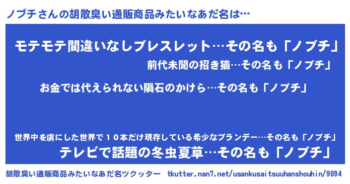 | ヘコむあだ名 | 『ノブっふぃ~』『ノブチ(小並感)』 |
