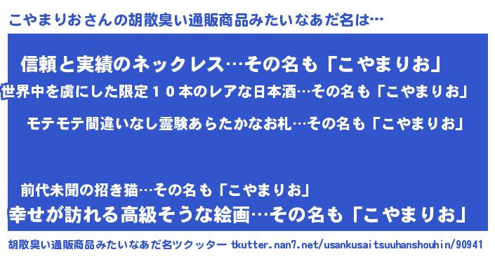 | 男性向けラノベタイトル風あだ名 | 『こやまりおの憂鬱』 |