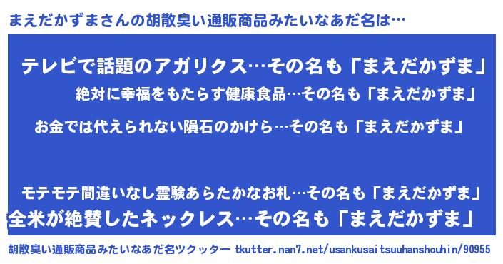 | ヘコむあだ名 | 『まえっちょ』『まえだかずま(苦笑)』 |