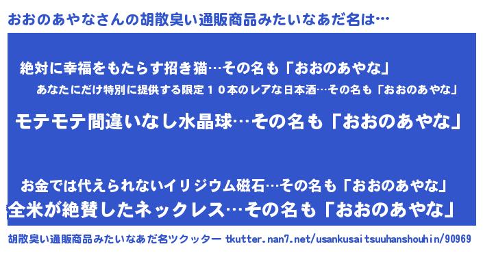 | ヘコむあだ名 | 『おおにゅー』『おおのあやな(笑)』 |