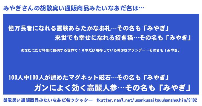 | ヘコむあだ名 | 『みやもー』『みやぎ(遠い目)』 |