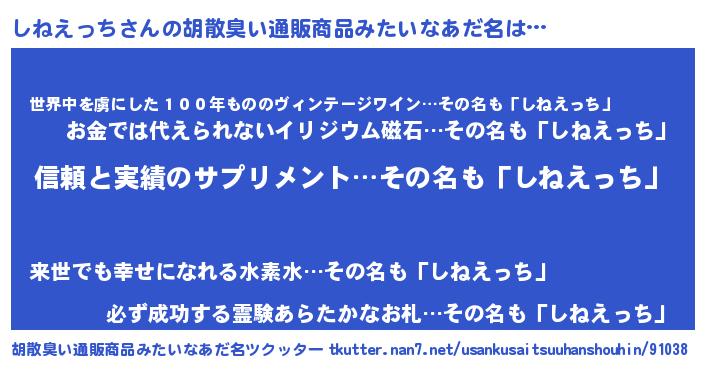 | 意味不明あだ名 | 『とにかく怪しいしねえっち』 |