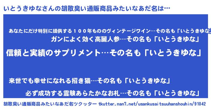 | 女子向けラノベタイトル風あだ名 | 『いとうきゆなは平凡を望む』 |